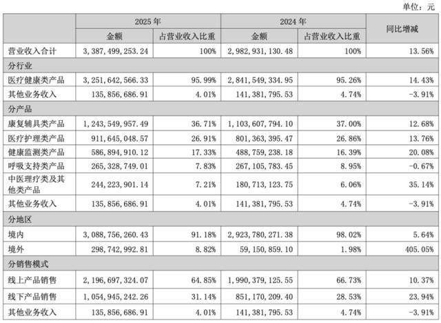 财报显示,公司2025年营收创下上市以来新高,达到33.87亿元,俨然已是家用医疗器械行业的头部。